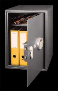 | | | | | | - Versicherbare Bargeldsumme Fr. 5`000.- - Gehäuse und Türe einwandig - Türblatt 4 mm - 1-seitige Bolzenverriegelung - Verschlussbolzen 15 mm - Türbänder innenliegend - Je 4 Verankerungslöcher in Boden und Rückwand - Tablare verstellbar - Verschluss: VT-SB 165: Doppelbartschloss mit 2 Schlüssel - Übrige Modelle: Elektronikschloss VT-SE, 15 mm vorstehend - Batterien inbegriffen - Mechanisches Notöffnungs- schloss mit 2 Schlüssel