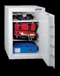 - Versicherbare Bargeldsumme Fr. 5`000.- - Gehäuse und Türe mehrwandig - Tür 68 mm, Türblatt 6 mm - 3-seitige Bolzenverriegelung - Verschlussbolzen 25 mm - Mangan-Panzerplatte im Schlossbereich - Verdeckte Türbänder - Feuerschutz nach DIN 4102 - Je 2 Verankerungslöcher in Boden und Rückwand - Tablare verstellbar - Verschluss: Doppelbartschloss mit 2 Schlüssel