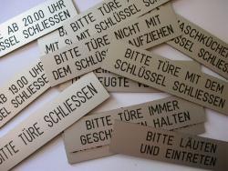 Aluminium, Messing und Kunststoff (Klebeschilder)