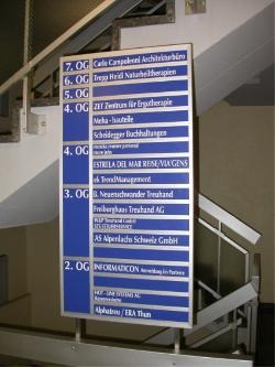 Orientierungstafeln inklusive den entsprechenden Firmenschilder können bei uns in verschiedenen Ausführungen bestellt werden.